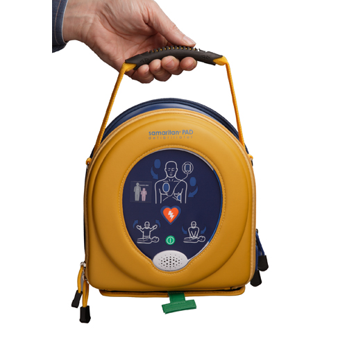 O DEA PADI SAMARITAN já vem acoplado com pás e barterias descartáveis após a desfibrilação ( carga para 50 desfibrilações em único paciente ).