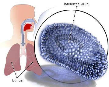 Sintomas: Coriza, tosse, febre alta, cefaléia, dispnéia, vômitos e diarréias ( principalmente em crianças ), mal estar, dor muscular.