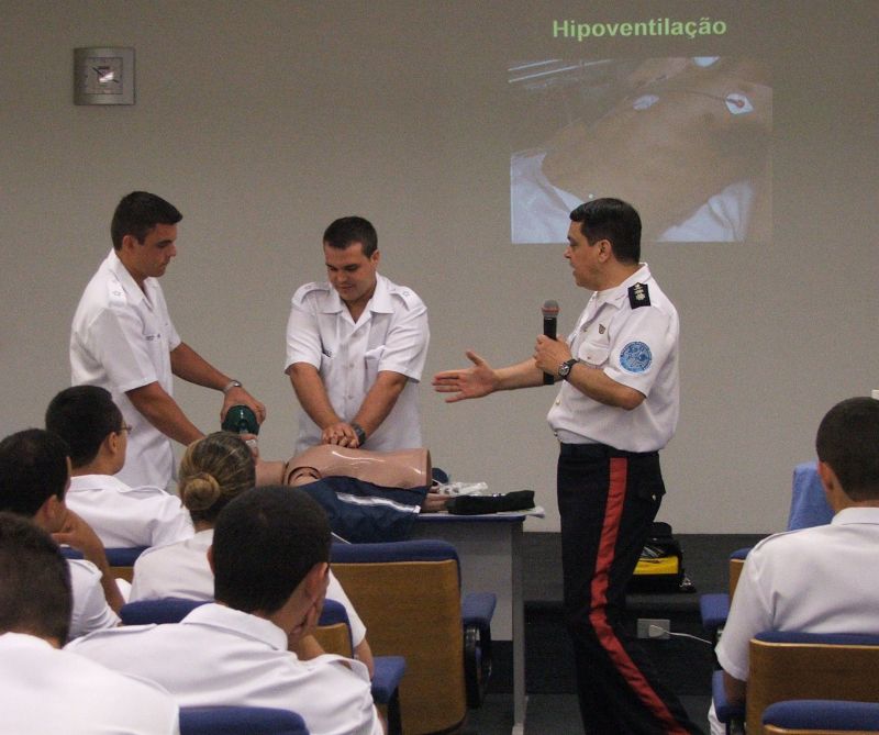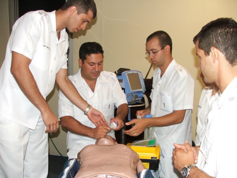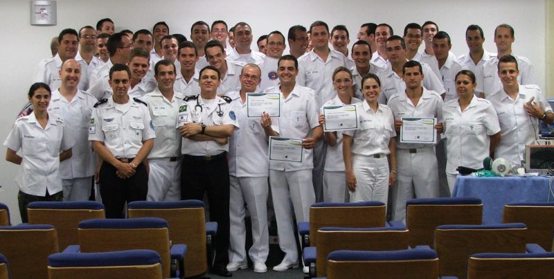 Oficiais médicos, dentistas, farmacêuticos e fisioterapeutas participaram do treinamento de emergência da Sociedade Brasileira de Terapia Intensiva.
